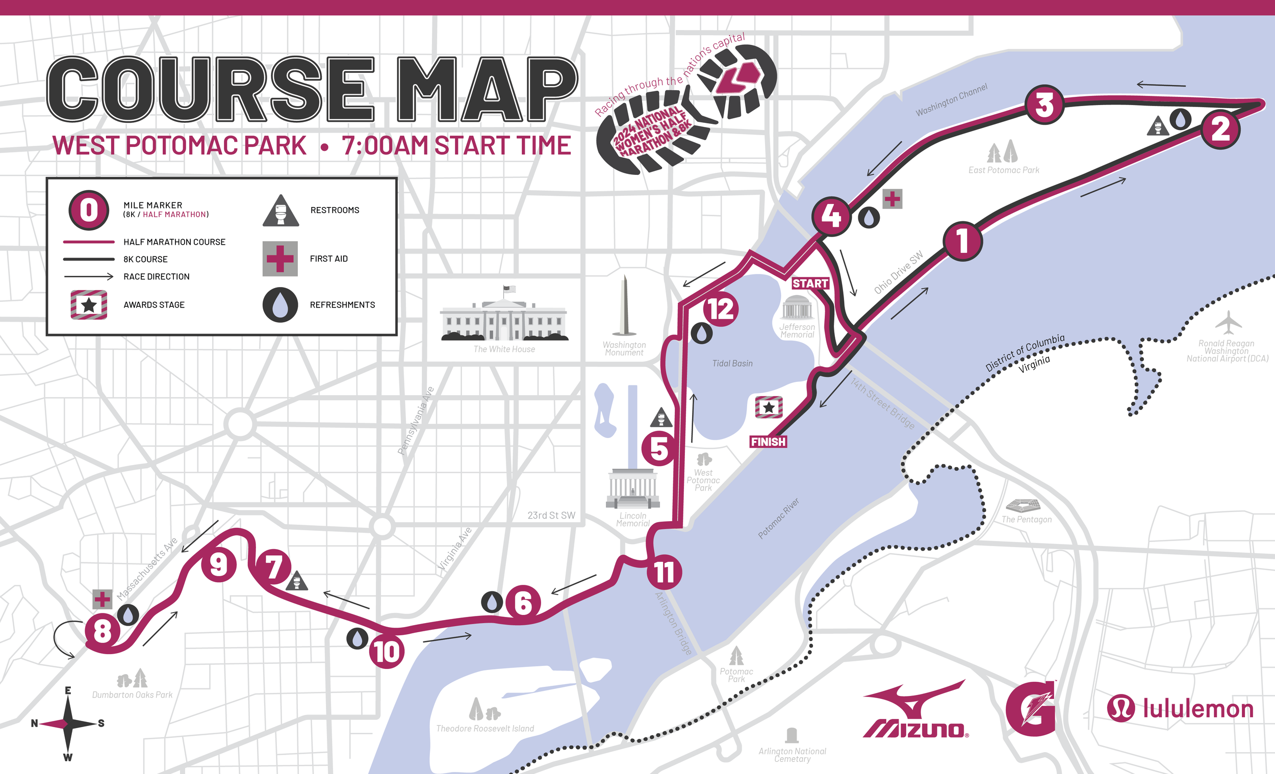 For a class project, I took on the challenge to redesign the brand for the National Women's Half Marathon, an annual race held in the heart of Washington, DC. The new brand identity aimed to exude empowerment, inclusivity, and determination. Collateral like an event map, swag, and posters were designed to excite participants and supporters.
